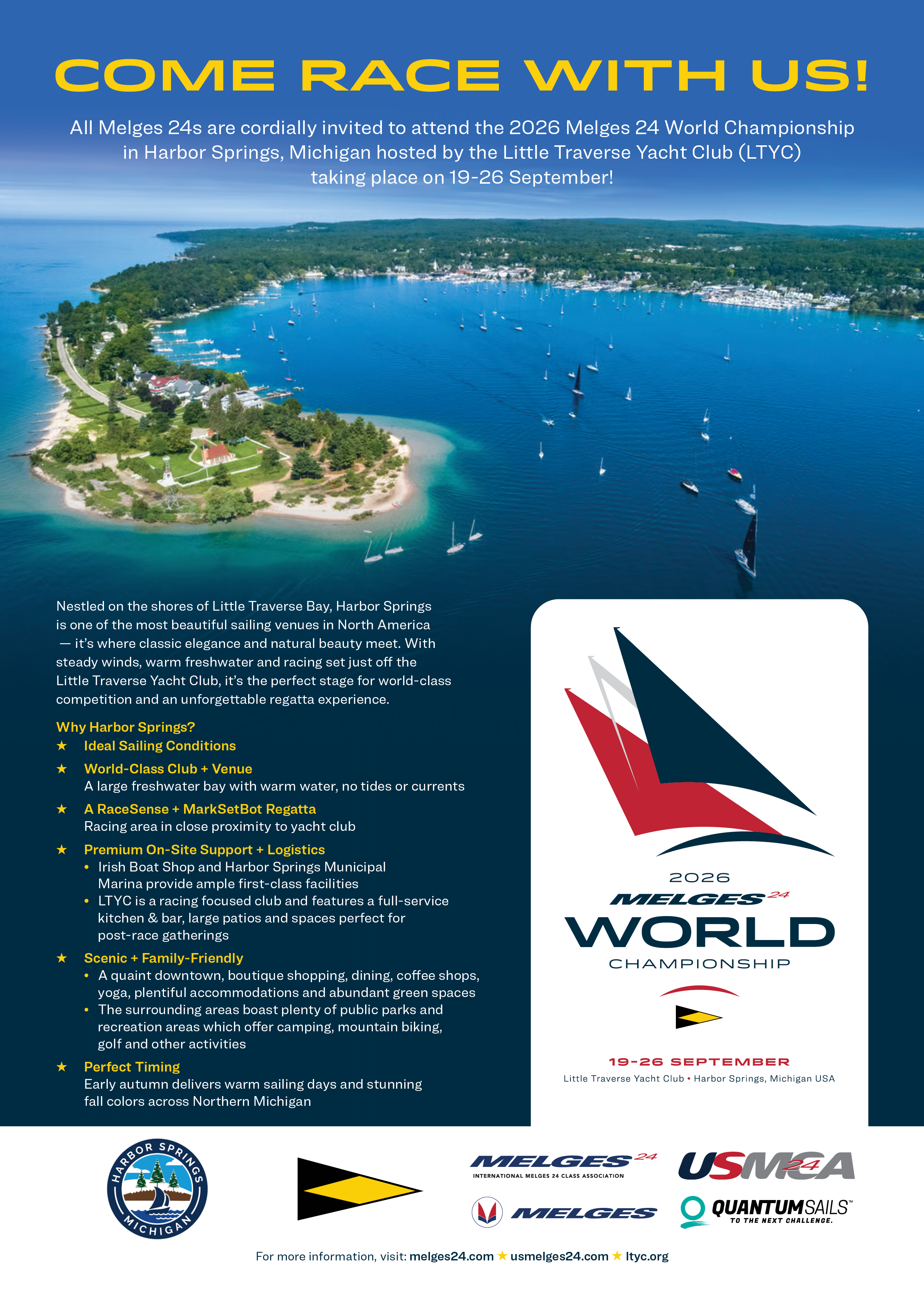 The 2026 Melges 24 World Championship will take place in Harbor Springs, Michigan, USA, hosted by the Little Traverse Yacht Club (LTYC) in October. Following an internal vote among multiple candidate venues, the US Melges 24 Class officially submitted LTYC’s bid, which was subsequently approved by the IM24CA World Council.