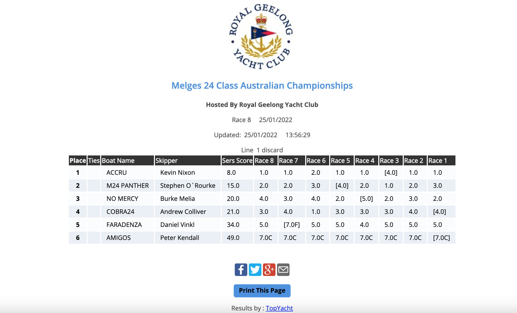 Glenda and Kevin Nixon's Accru sits fourth overall after Day 1 - 2020 Melges 24 Australian Titles
