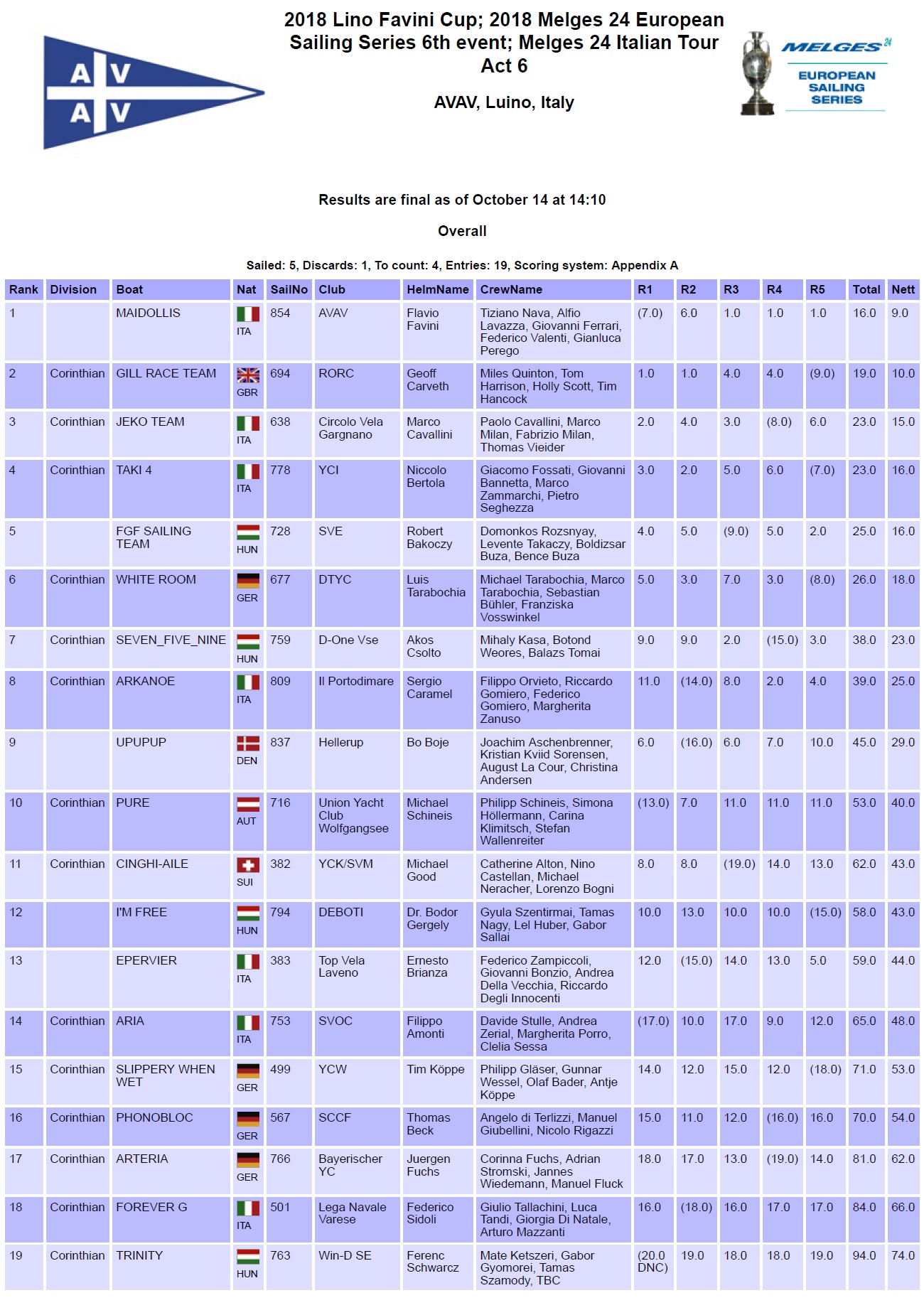 Read more | Results - Overall & Corinthian