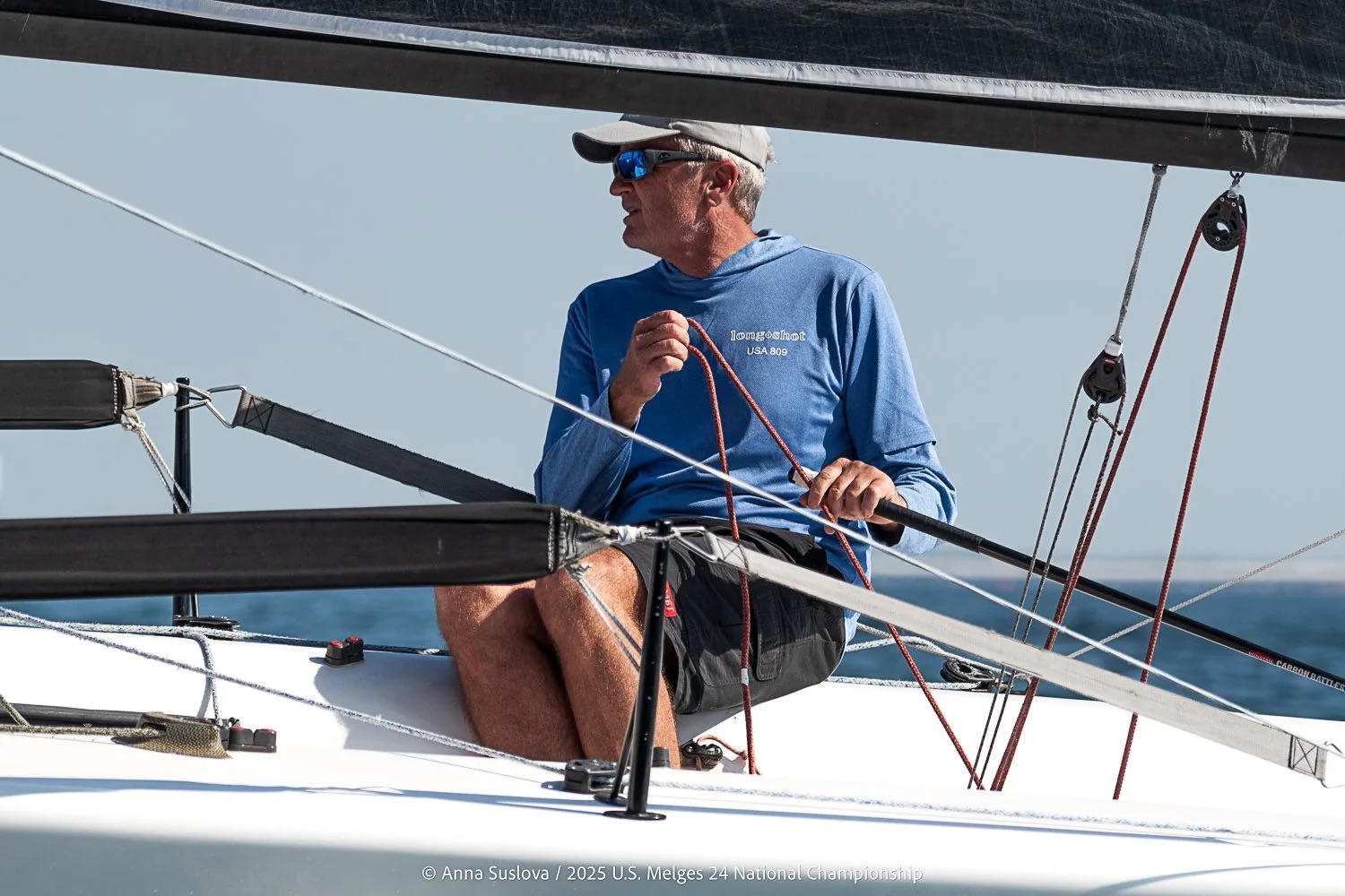 The depth of the fleet is equally impressive. The next group of teams: Dan Berezin racing Surprise, Scot Zimmerman on Bad Idea, John Shockey at the helm of Wombmates Racing, Jaime Torres’ Smile and Wave, and John Poulson on Longshot are all Corinthian teams, or have raced Corinthian at various points this season. Their strong performances across multiple events (especially for Berezin and Torres, who have competed in seven regattas each) underscore the strength and commitment of the Corinthian North American fleet.