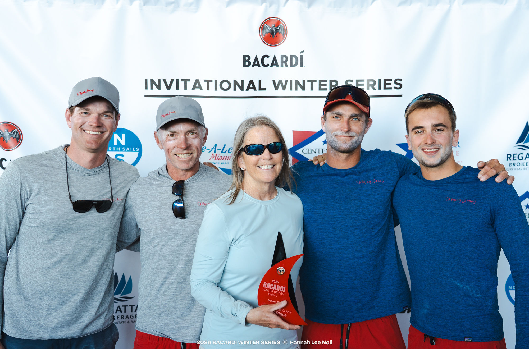 23 February 2026 - Miami, FL, USA - Sandy Askew’s Flying Jenny in overall ranking and Stuart Simpson's Team Barbarians in Corinthian division claimed victory at Bacardi Winter Series Event No.2 after nine races over three sun-soaked days on Biscayne Bay. It was a tale of two breezes: a light-air chess match and a heavy-air grand finale.