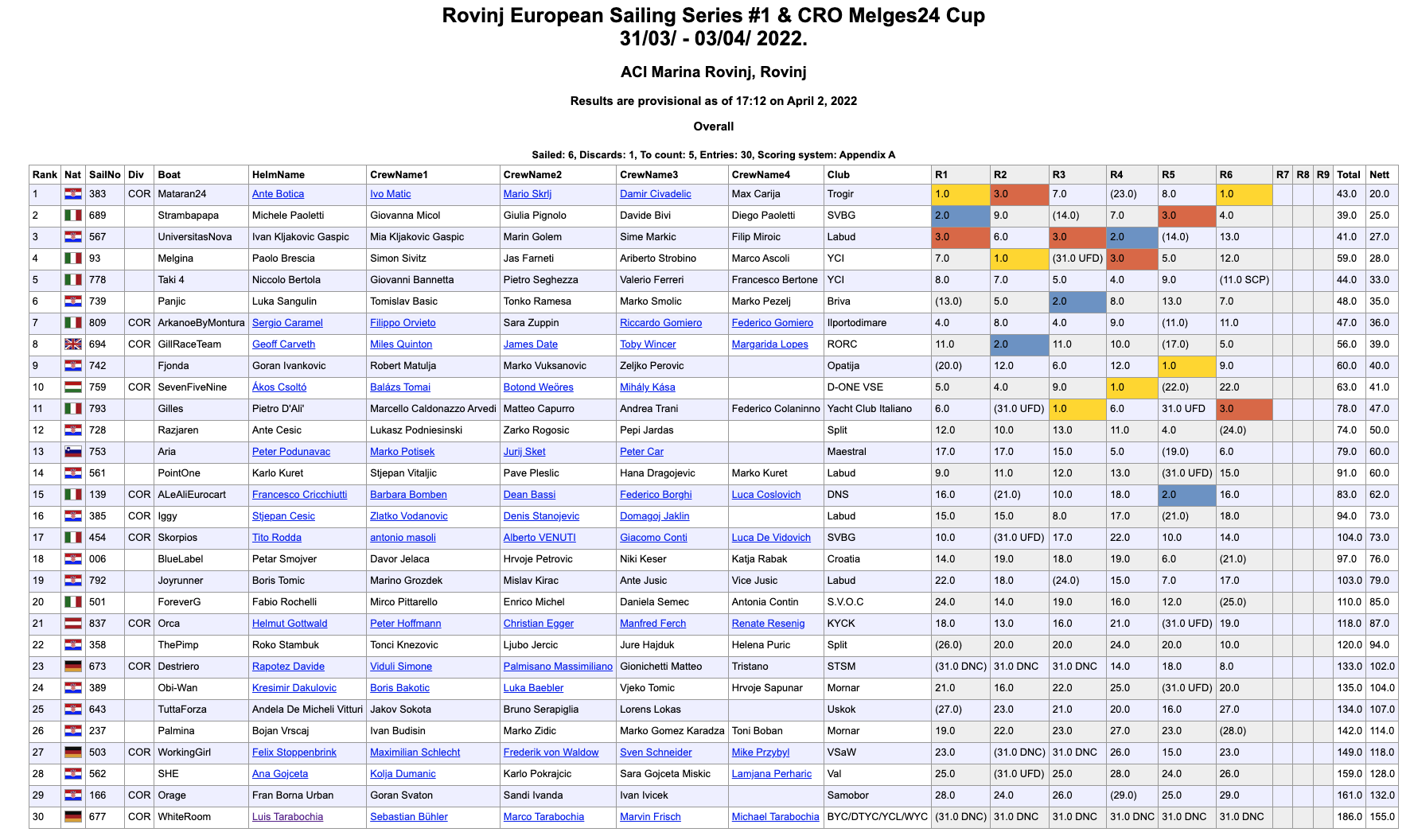 1. MATARAN CRO383 (COR) of Ante Botica 1-3-7-(23)-8-1 20 pts